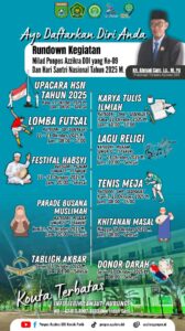 Masih di hari yang sama, akan digelar Lomba Karya Tulis Ilmiah untuk tingkat SMA/sederajat pada pukul 10.00–17.00 WITA. Selain itu, kegiatan Lomba Futsal untuk kategori SD/sederajat juga akan berlangsung selama dua hari, yakni 22–23 Oktober 2025, mulai pukul 08.00–17.00 WITA.
